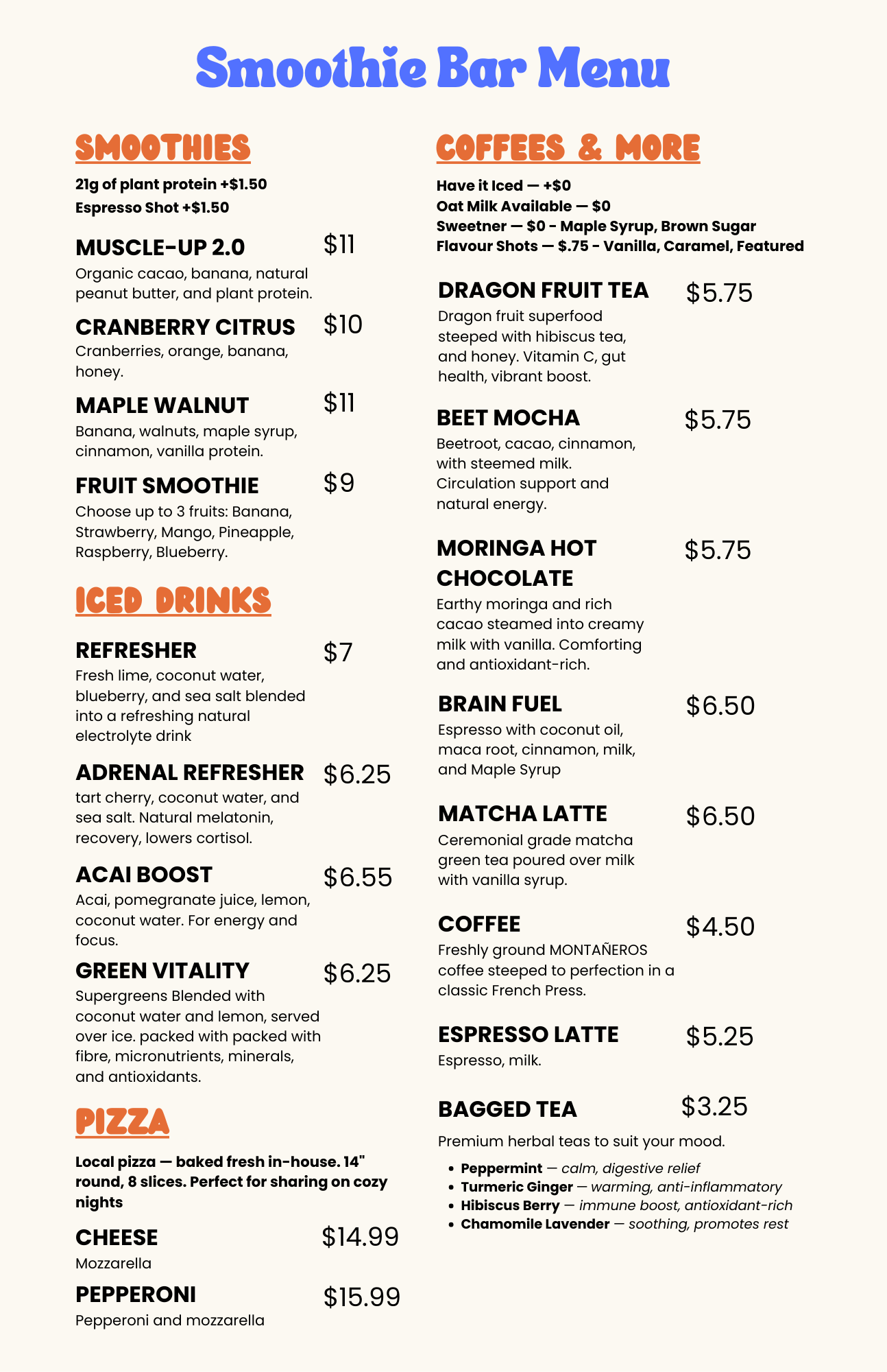 Fuel Your Flow with fresh, delicious smoothies and more—made to refresh, recharge, and keep the good vibes going.